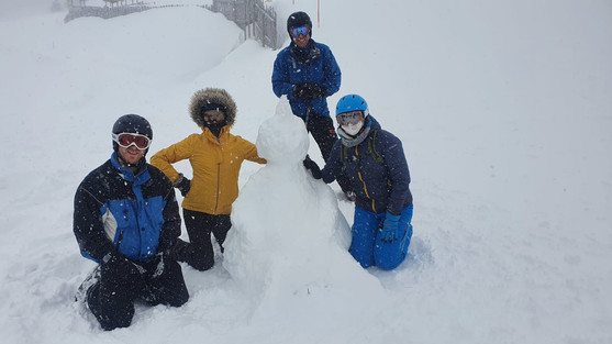 Other highlights of the week included hotel karaoke organised by Tom Cibu, lunch meet-ups with James, Annabel and the 3-month old Hal (who did his bit on dress up day too (Halmatian!), apres-ski at the Goaßstall and the Schwarzacher where Karen ‘K-Shiz’ Womack did a phenomenal job of procuring tables for 16 people on multiple occasions, sauna, post-sauna snow angels, drunk night-skiing, impromptu apple-pie shots, hands-free dessert, snowman-building, an evening of Mafia co-ordinated by Ben, a fleeting birthday visit by Tom ‘McQuestionable’ McNeil, and laughing until we cried (more often than not instigated by either Jim McJim or Emily ‘E-bomb’ Davies). Another highlight was the round Saalbach challenge which consists of 65 kilometres of skiing, 32 lifts, and 12,400 meters of elevation, expertly navigated by Pablo ‘OCD’ Gutierrez. This trip was a first Pankiski for Rosie Cole, James Shires and Annabel Spearman – we hope this trip didn’t put you off!!